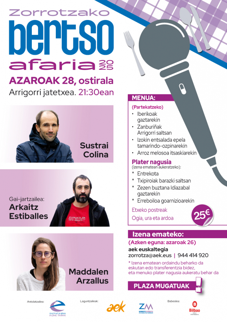 BERTSO AFARIA: SUSTRAI COLINA+ MADDALEN ARZALLUS + ARKAITZ ESTIBALLES (gai jartzailea)